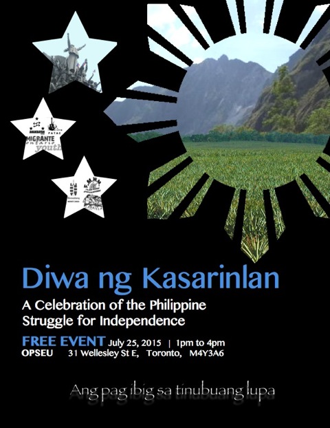 The event will take place July 25th, 1-4 pm at the OPSEU Region 5 office in 31 Wellesely St. East, Toronto; refreshments will be provided and please visit facebook.com/Anakbayan.Toronto for more details.