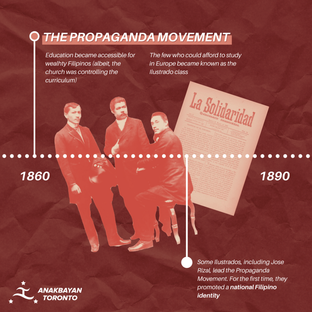 From the 16th century to the 19th century, the Philippines was under Spanish colonial rule. At the beginning of the 19th century, Spain made their education system (which was controlled by the Church) accessible only to wealthy Filipinos. The small educated class of Filipinos, who traveled to Europe for their studies, became known as the Ilustrado class. The Ilustrados experienced racism as students in Spain, which sparked an aspiration of Philippine independence from the colonizer.